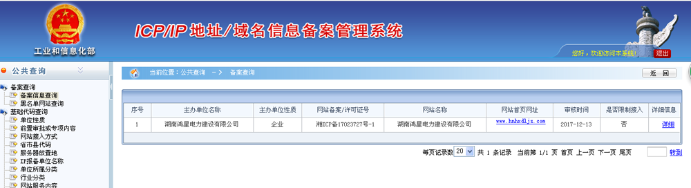 公司通過提交相關的資質證件,網站已成功獲批湖南通信管理局備案,備案號為:湘ICP備17023727號-1:
